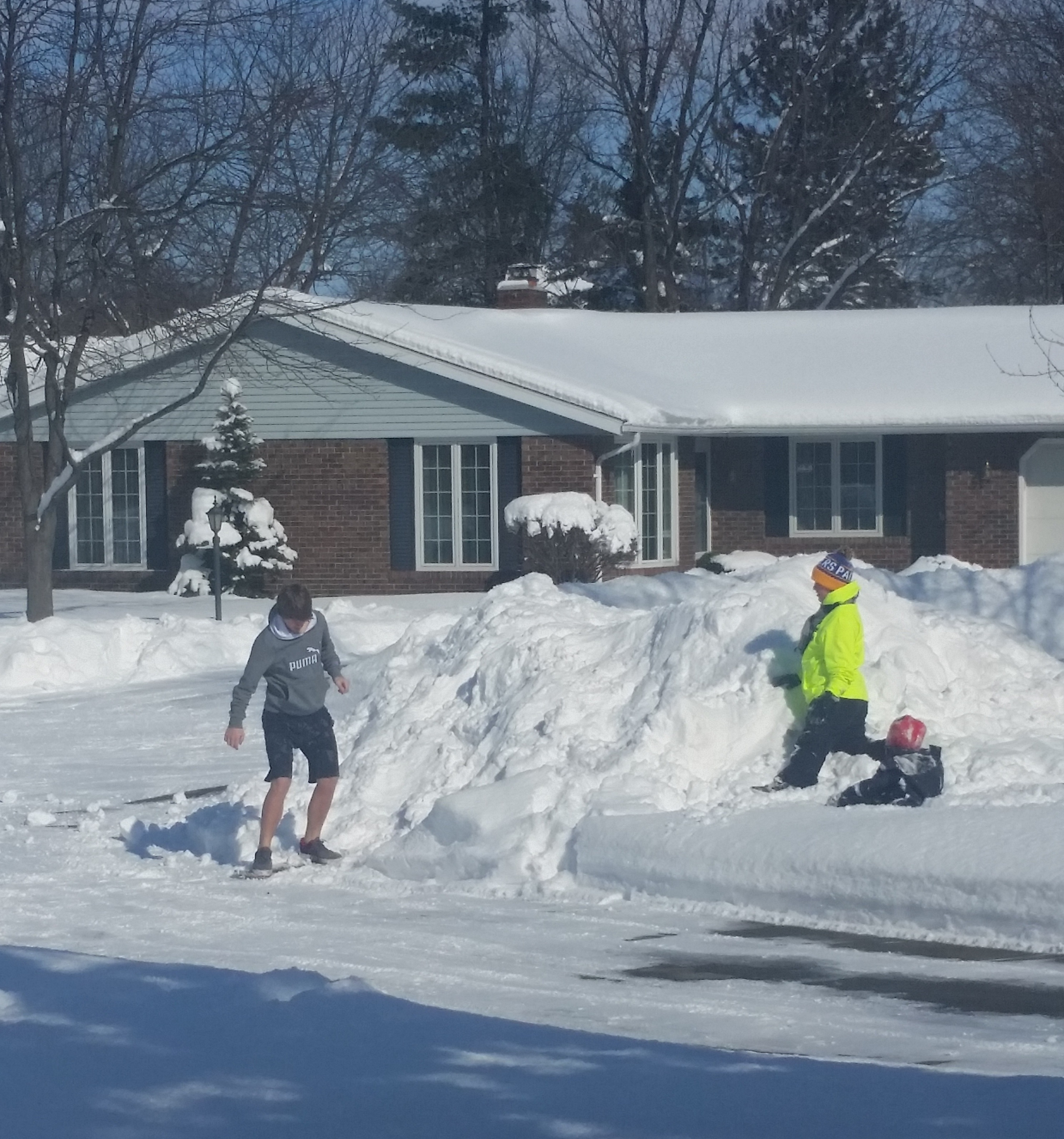 All this to say, that I fully realize time isn’t just marching by, it’s sprinting. But there’s something about a snow day that makes time slow up a tiny bit. For at least one day, I’m not only knee-deep in snowdrifts, but in the craziness and mayhem generated by these four boys. There will be a day in the future, I’m sure, when a storm will bring enough snow to keep Jeff and I housebound for a day or two. It’ll be quiet. I’ll write, knit or stare out the window, feeling like something’s missing. I’ll realize it’s the buzz of activity that’s currently happening in this house — video games, laughter, periodic pops from the Nerf dart guns. And I’ll for sure miss having one of the boys wander into the kitchen as I’m working and join me at the table with his bowl of Ramen noodles.